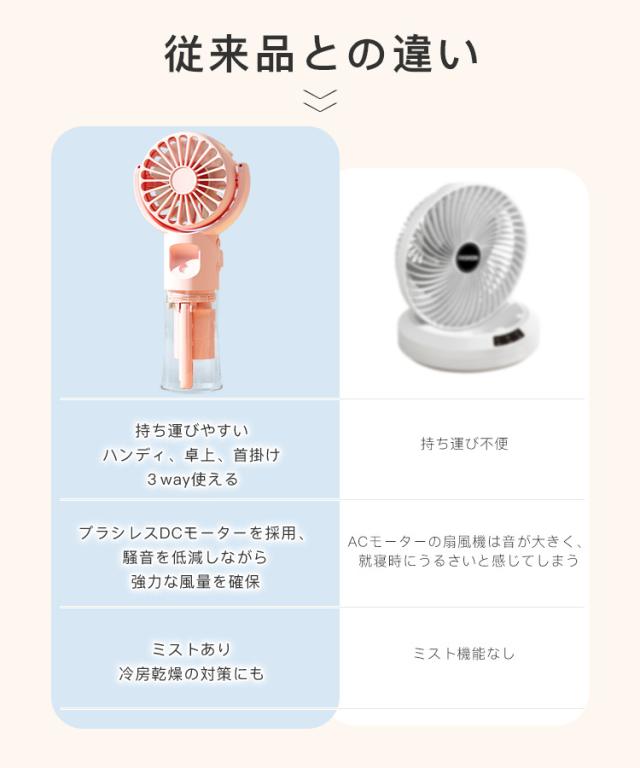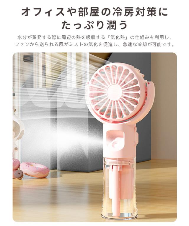 【ミスト機能 軽量 静音】ハンディファン ハンディ 扇風機 ミスト付き 携帯扇風機 卓上扇風機 夏 USB充電式 乾燥肌対策 熱中症対策 2WAY 携帯扇風機 加湿 4段階風量 体温調節 かわいい 卓上使用可能 運動 散歩 屋外活動 通勤 仕事中 アウトドア