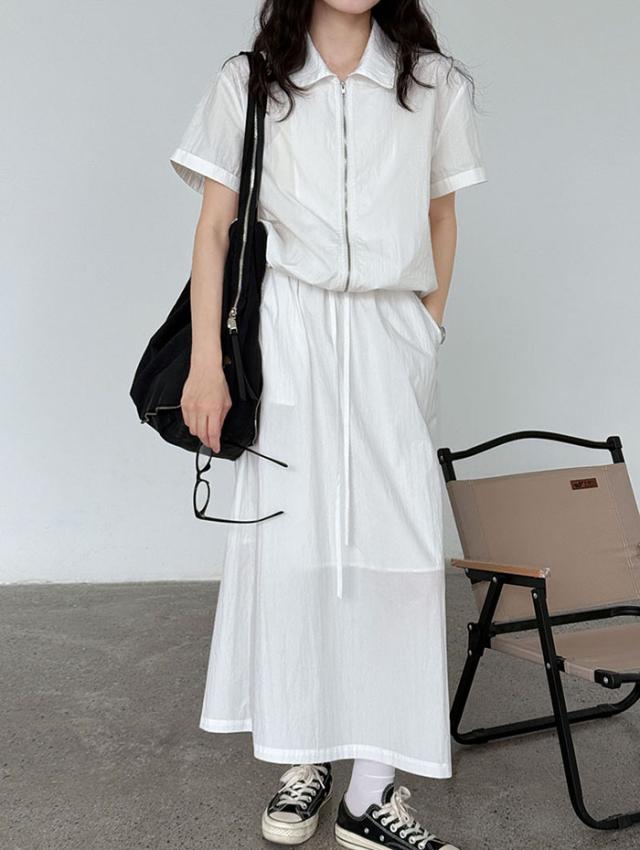 セットアップ レディース スカート 上下セット パーカー カジュアル 春 夏 ロングスカート ジップアップ 半袖 きれいめ ジャージ 2点セット トップス ゆったり 体型カバー リラックス ボトムス