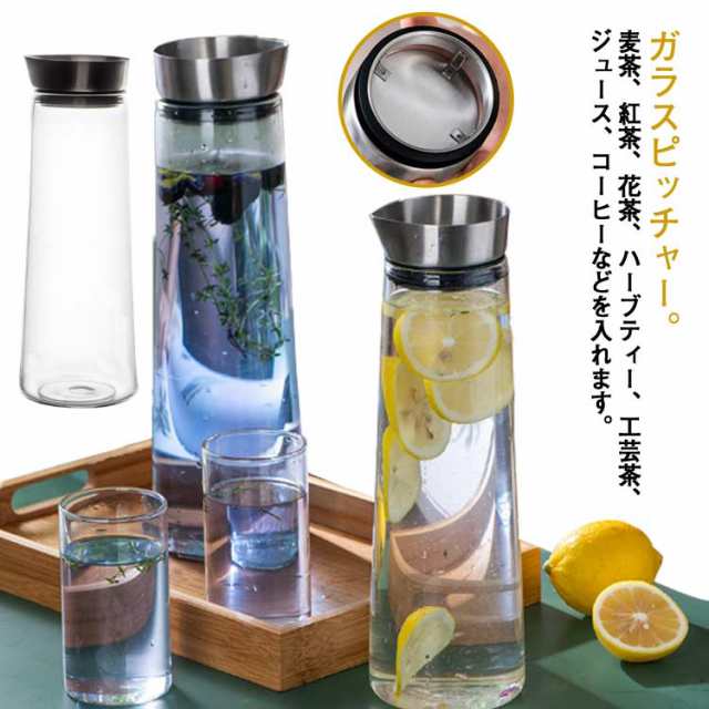 ガラス ピッチャー 耐熱ガラス ウォーターピッチャー アイスティー 花茶 ジュース フレーバーウォーター 麦茶 ポット おしゃれ スリム 水差し 洗いやすい 麦茶ポット 冷茶ポット アイスティー 冷茶 ジャグ 冷水筒 食洗器対応 大容量 1000ml 1400ml