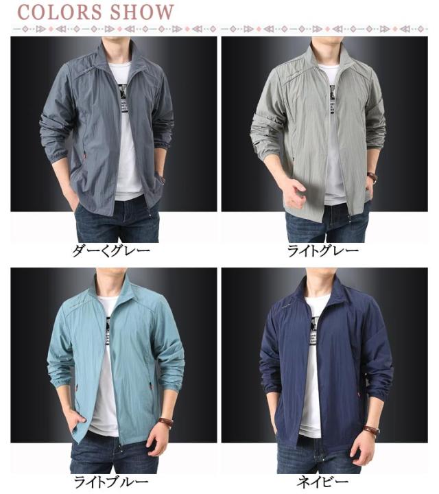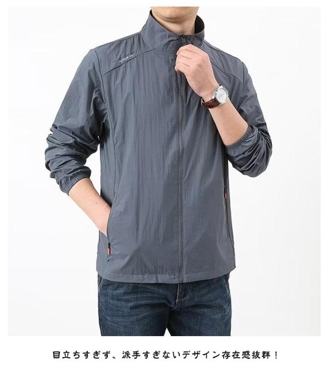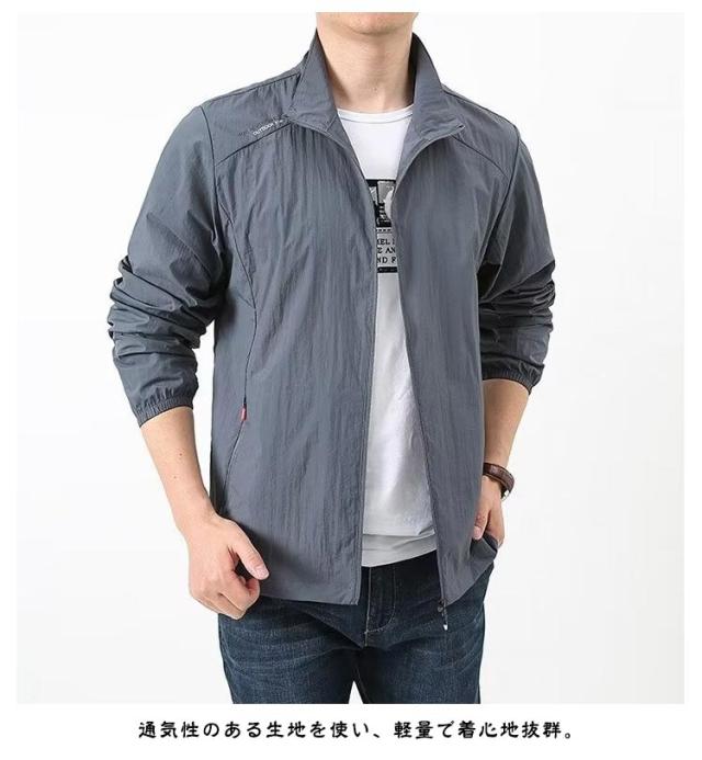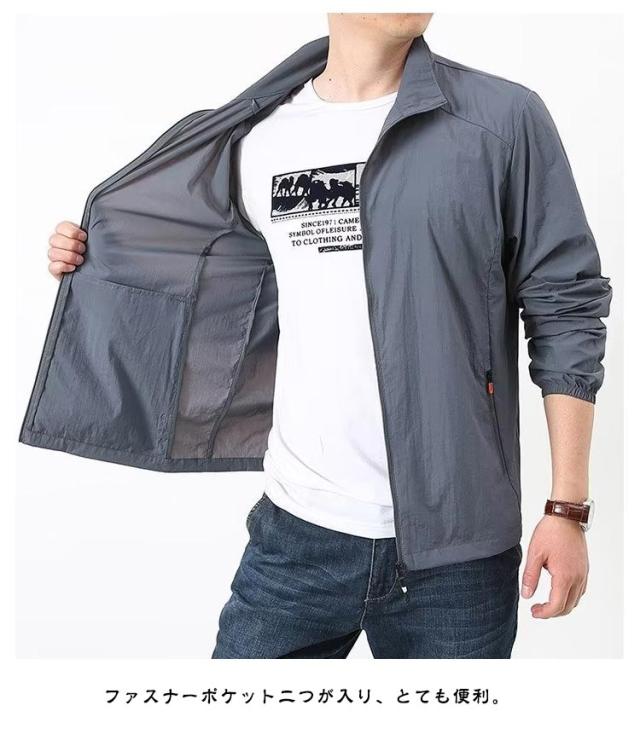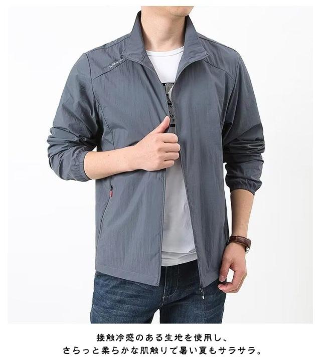 ジャケット ラッシュパーカー フードなし 無地 接触冷感 吸汗 薄手 メンズ 夏用 コート カジュアル UVカット 立ち襟 軽量 速乾 紫外線対策 ラッシュパーカー 冷房対策 ジャンパー 涼しい 日焼け防止 通気性 ブルゾン 接触冷感 大きいサイズ アウトドア