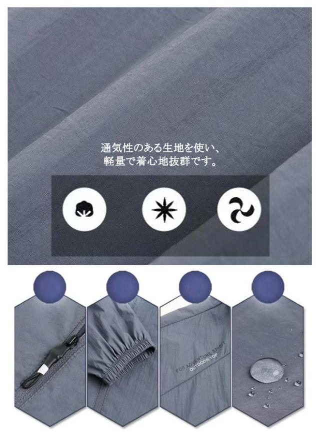 | M-5XL!薄手なのにしっかりUVカット軽量ジャケット。 接触冷感のある生地を使用し、さらっと柔らかな肌触りで暑い夏もサラサラ。 通気性のある生地を使い、軽量で着心地抜群。 目立ちすぎず、派手すぎないデザイン存在感抜群! ファスナーポケット二つが入り、とても便利。 | |