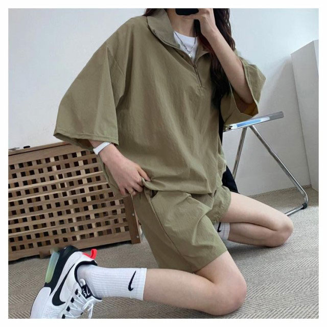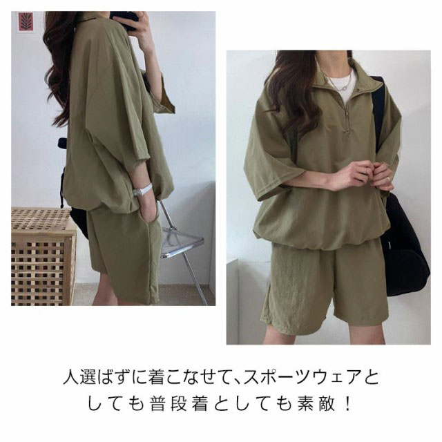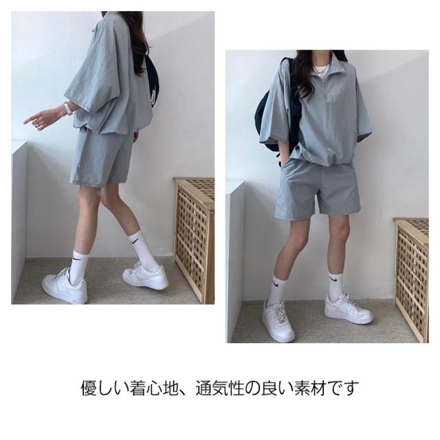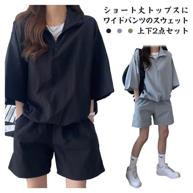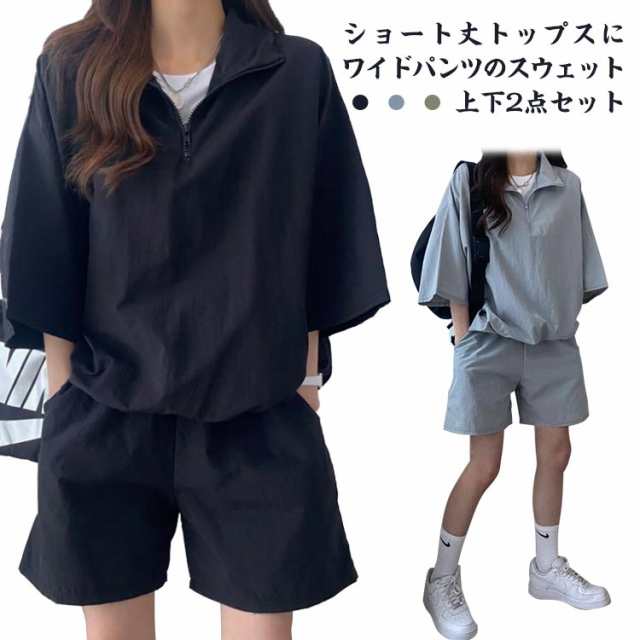 セットアップ レディース 春夏 スウェットセット スポーツウェア 上下セット パーカー 半袖 ショート丈パンツ 2点セット ジャージ ジップアップ プルオーバー ゆったり 大きいサイズ 運動着 部屋着 カジュアル 大人 可愛い おしゃれ 春 夏 夏服 秋 送料無料