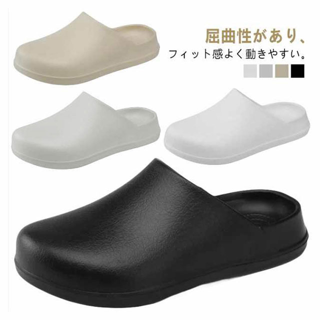 厨房シューズ コックシューズ キッチンシューズ かかとなし レディース メンズ 疲れない かわいい 防水 防油 厨房靴 立ち仕事 飲食店 黒 白 作業靴 24.5cm 滑らない 疲れにくい
