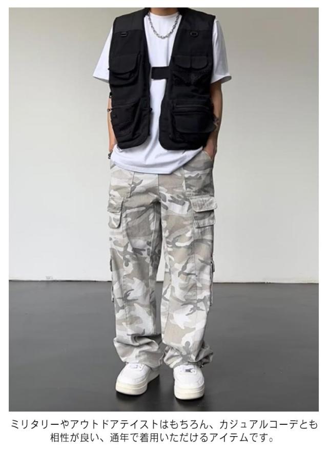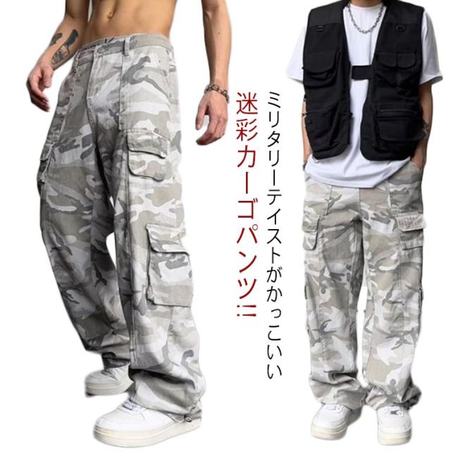 迷彩柄 ポケット多い 迷彩パンツ ミリタリー 夏 ゆったり カモフラージュ ワイド カーゴパンツ 太め パンツ ダンスパンツ 大きいサイズ 迷彩カーゴパンツ 迷彩ズボン ストリート系 春 メンズ