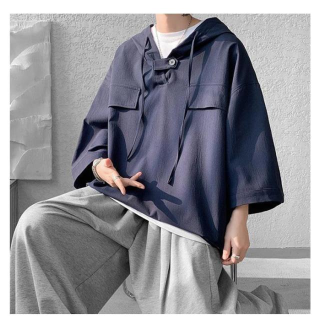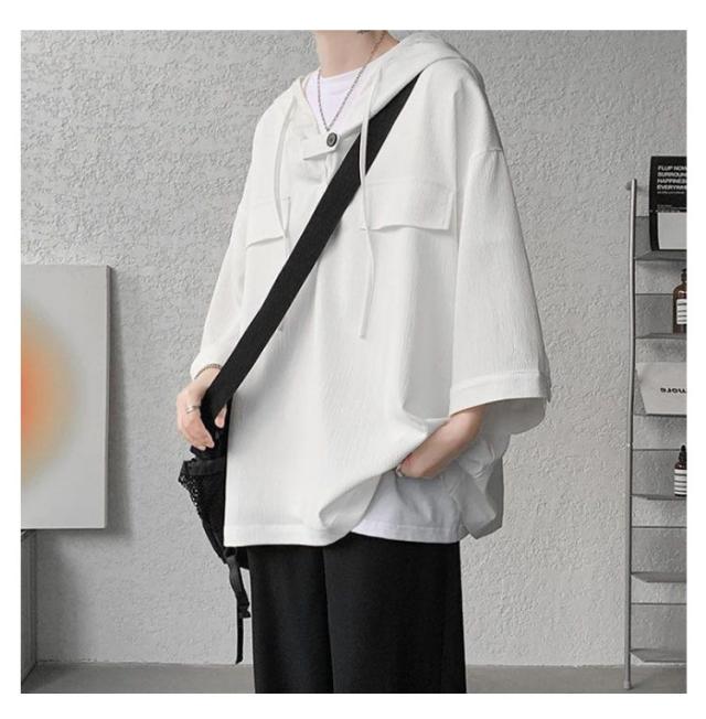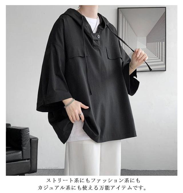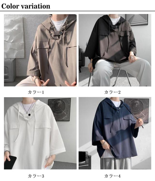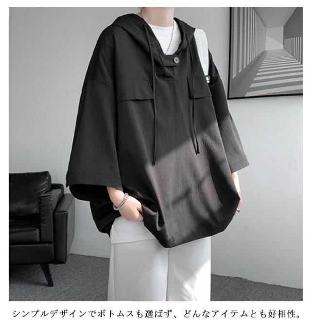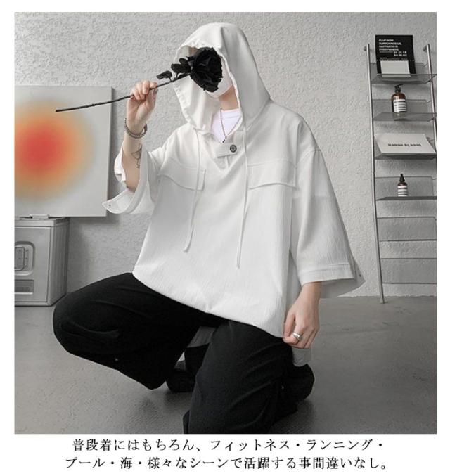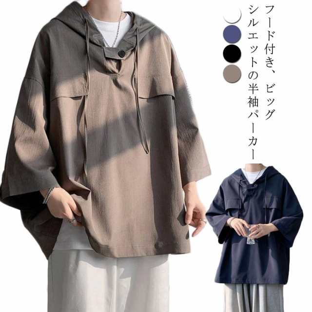 パーカー メンズ 半袖 フード付き 半袖パーカー フードパーカー サマーパーカー Tシャツ 夏パーカー 七分袖 プルオーバー 夏服 カジュアル シンプル 大きいサイズ 韓国ファッション 体型カバー M L XL 2XL 3XL