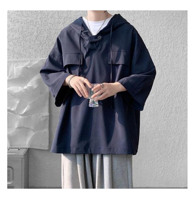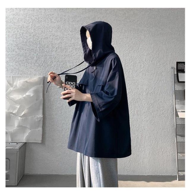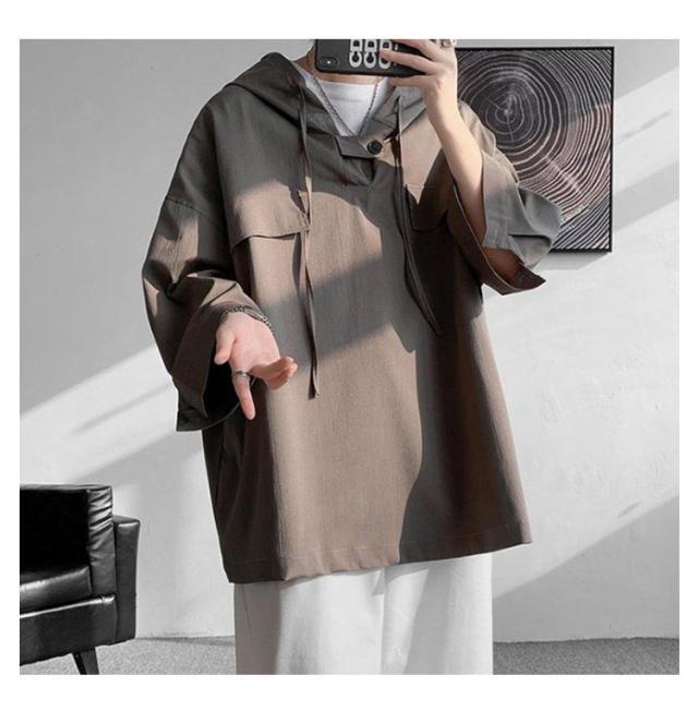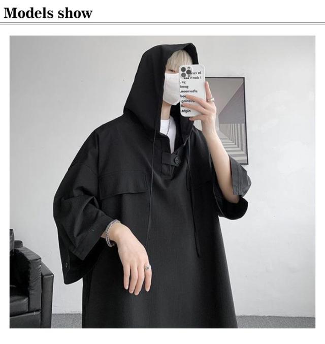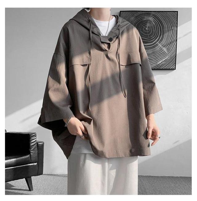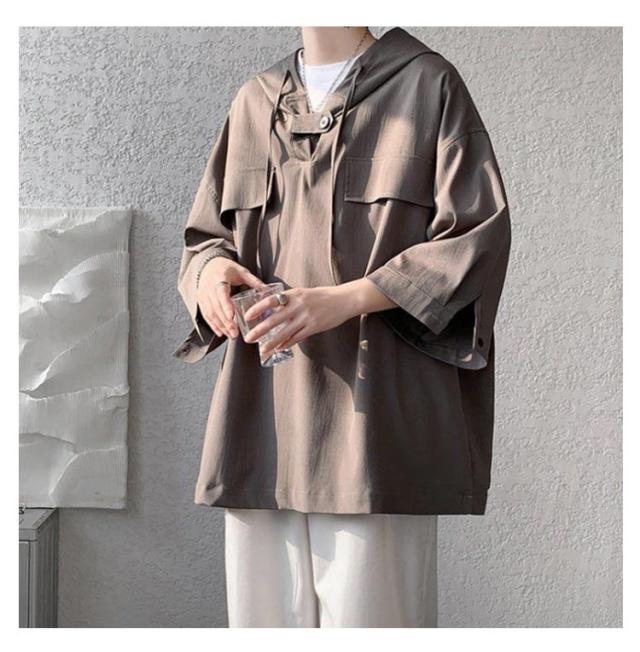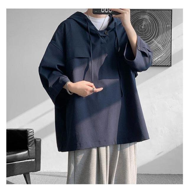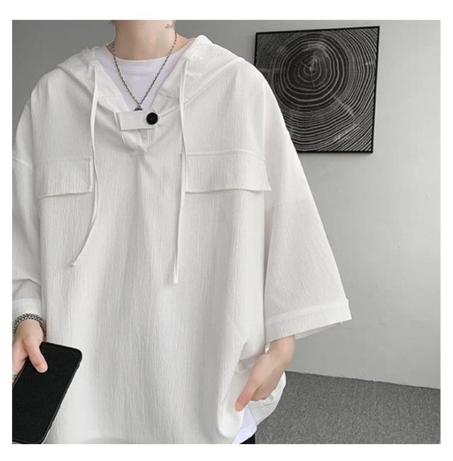 パーカー メンズ 半袖 フード付き 半袖パーカー フードパーカー サマーパーカー Tシャツ 夏パーカー 七分袖 プルオーバー 夏服 カジュアル シンプル 大きいサイズ 韓国ファッション 体型カバー M L XL 2XL 3XL
