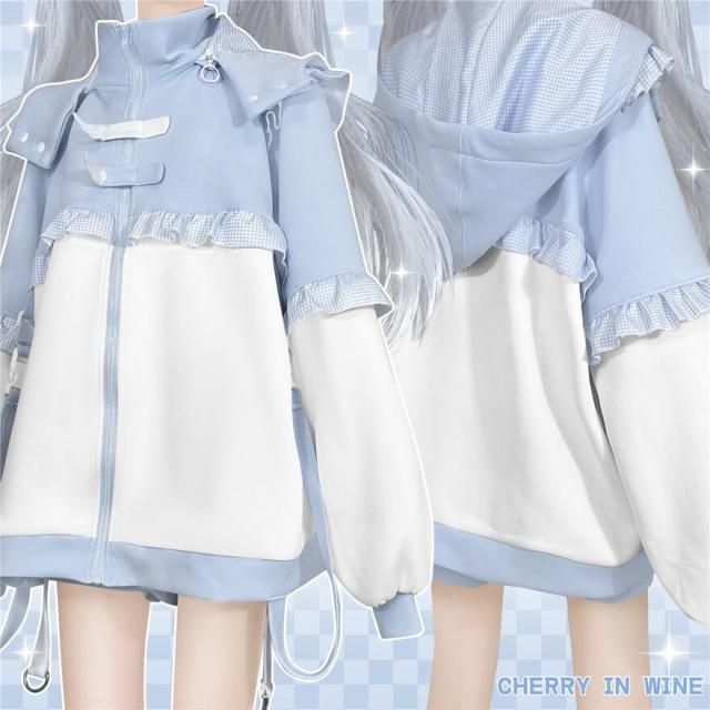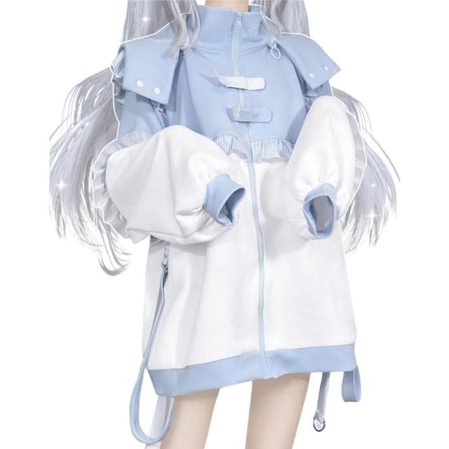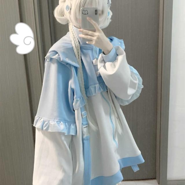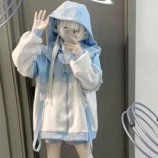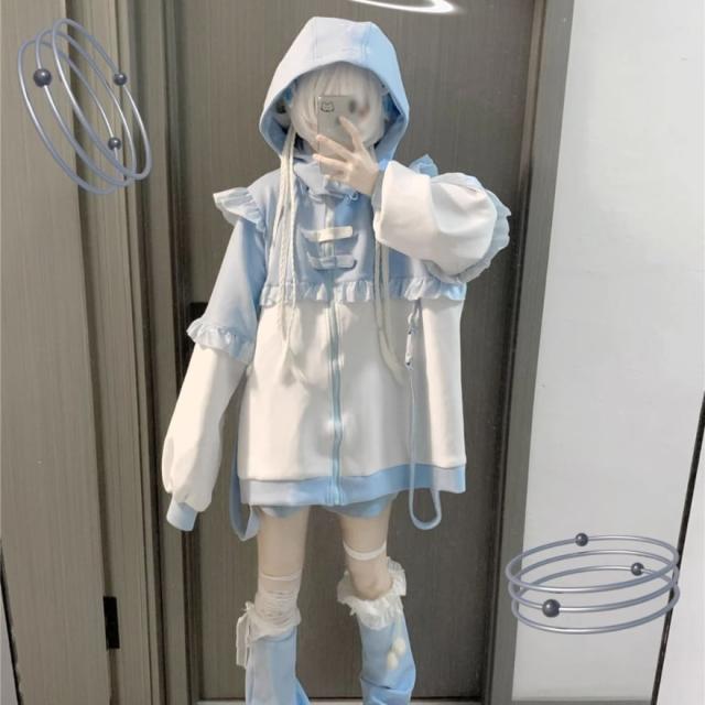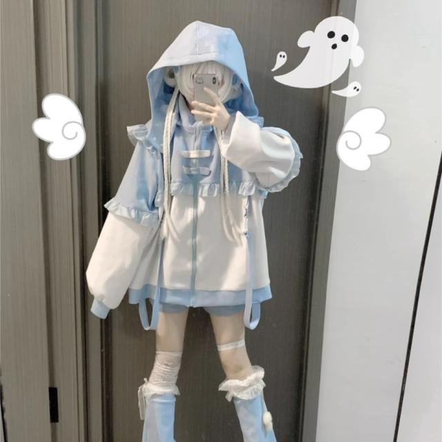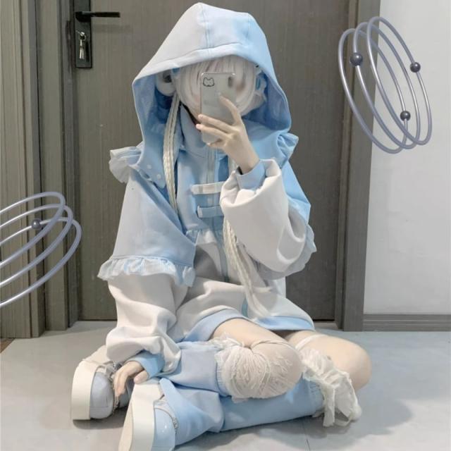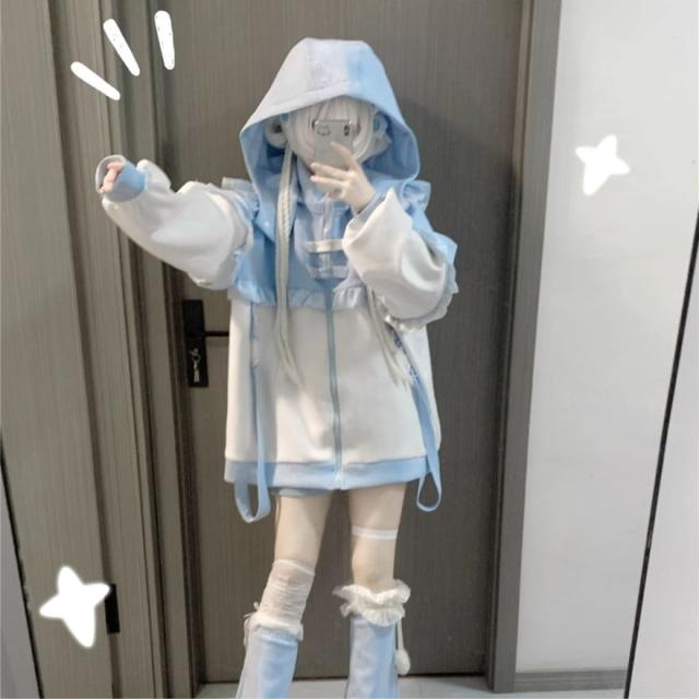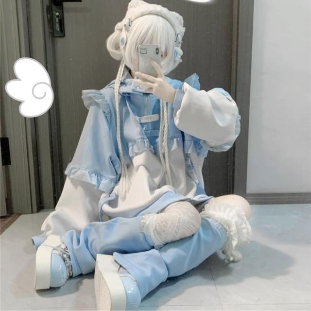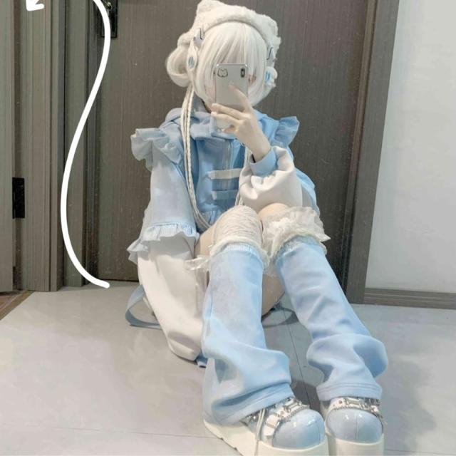 【即納】天使界隈 地雷系 可愛い服 セットアップ 付け袖 オールシーズン 水色フーディ レッグウォーマー2点セット 量産型・ゆめかわコーデ