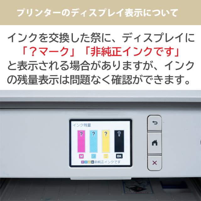 - インクをセットする時、カートリッジを取り付けるのに押し込む力が必要でした。 正規品は軽く取り付けられるので、この商品を取り付けた時は少し心配でした。 印刷してみたら問題なく使えています。 正規品と比較...