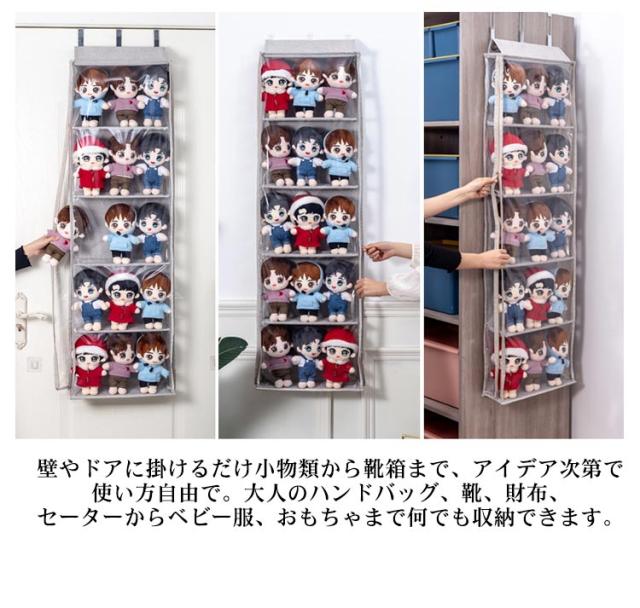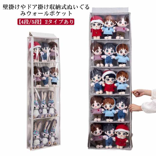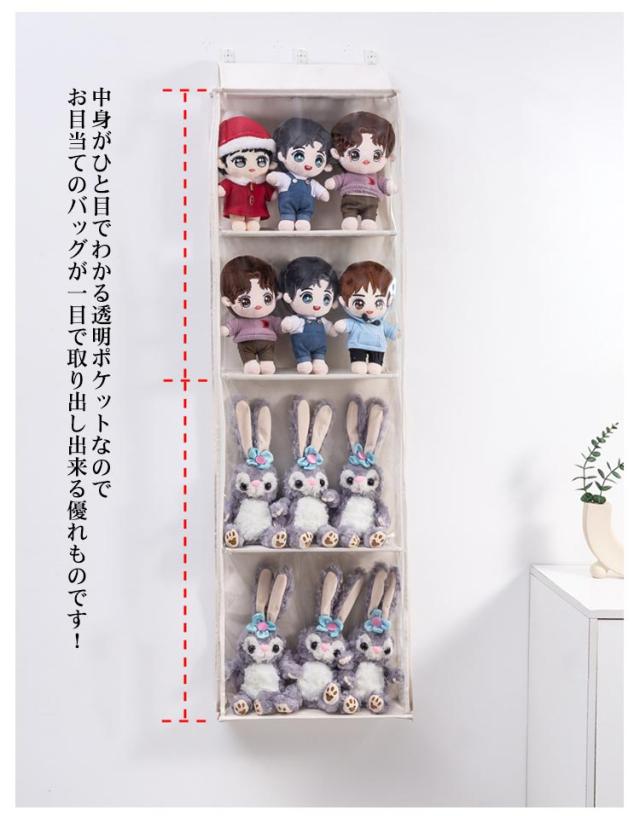 コレクション ぬいぐるみ収納 コレクションケース 収納ボックス 大容量 透明 バッグ収納 カバン収納 吊り下げ 壁掛け 4段/5段 ディスプレイ クリア 収納ケース 見せる収納 推し活 透明窓付き ぬいぐるみウォールポケット