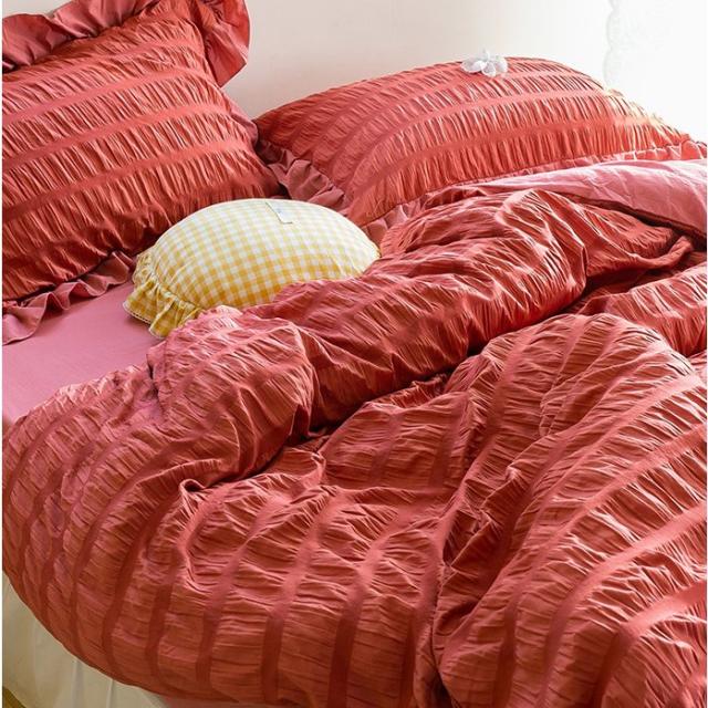 無地 ベッドカバー 綿 布団カバー 春 布団カバー おしゃれ 4点セット 寝具セット 寝具カバー 掛け布団カバー シングル ダブル レース 姫系 ベッドカバー