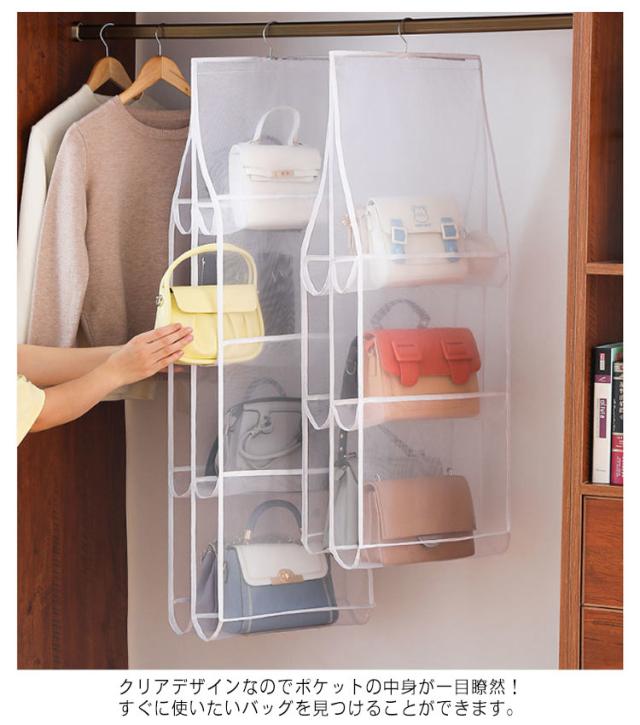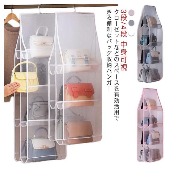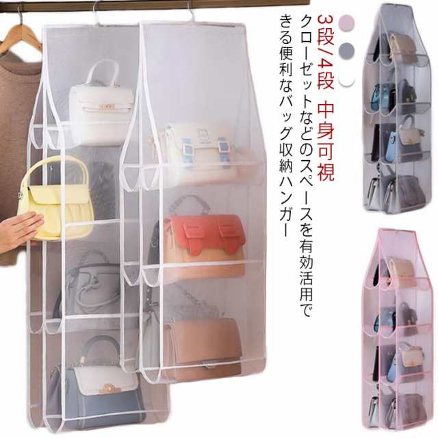 バッグ収納 ギフト ラック クローゼット収納 無地 北欧 防塵 中身可視 通気 フック付き カビ防止 洗える カバン収納 吊り下げ クローゼット バッグ収納ホルダー 壁掛け 整理整頓 型崩れ防止 お片付け 大容量 軽量 プレゼント ハンガー
