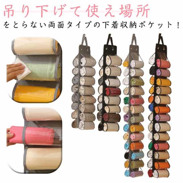 吊り下げ 靴下収納 仕切り 16格 26格 吊り下げ収納 ハンガー式 大容量 吊り下げ すっきり 収納ケース 下着収納 ケース 北欧 省スペース 両面 ウォールポケット 型崩れ防止 クローゼット 小物 クリア ポケット 下着 小物 衣類 簡単