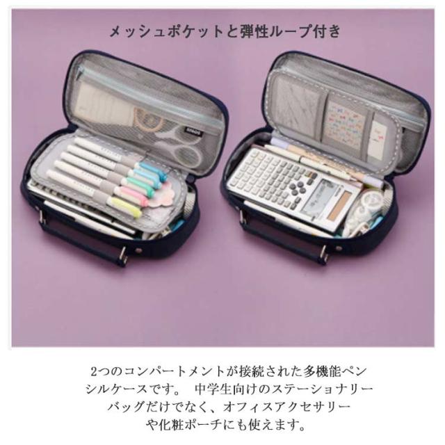 | 【丈夫な素材】高品質のキャンバス素材を採用で、耐久性があり、清掃しやすく、耐摩耗性に優れたペンケースですし、筆箱内部の物をちゃんと守ります。 毎日の生活に大活躍! 【仕分け収納】メッシュポケットと弾性ループ付き、カード、メモ、常に使うペンを分けて収納でき、小物が探しやすくなります。 【ペンケース以外の用途にも便利】2つのコンパートメントが接続された多機能ペンシルケースです。 中学生向けのステーショナリーバッグだけでなく、オフィスアクセサリーや化粧ポーチにも使えます。 【たっぷり入る大容量】ペン類が約40本入る大容量デザイン。消しゴム、付箋、ハサミ、定規、メジャー、修正テープなどの小物もたっぷり収容できます。 ※収容数はペンの種類によって異なります。 【持ち運びに便利】持ち手が付いているので持ち運びにも便利で、バッグなどからの取り出しにも便利です。これは、女の子、息子と娘、若者と大人、作家とアーティストへの卒業、誕生日プレゼント、学校や旅行用品への贈り物として最適です。 | |