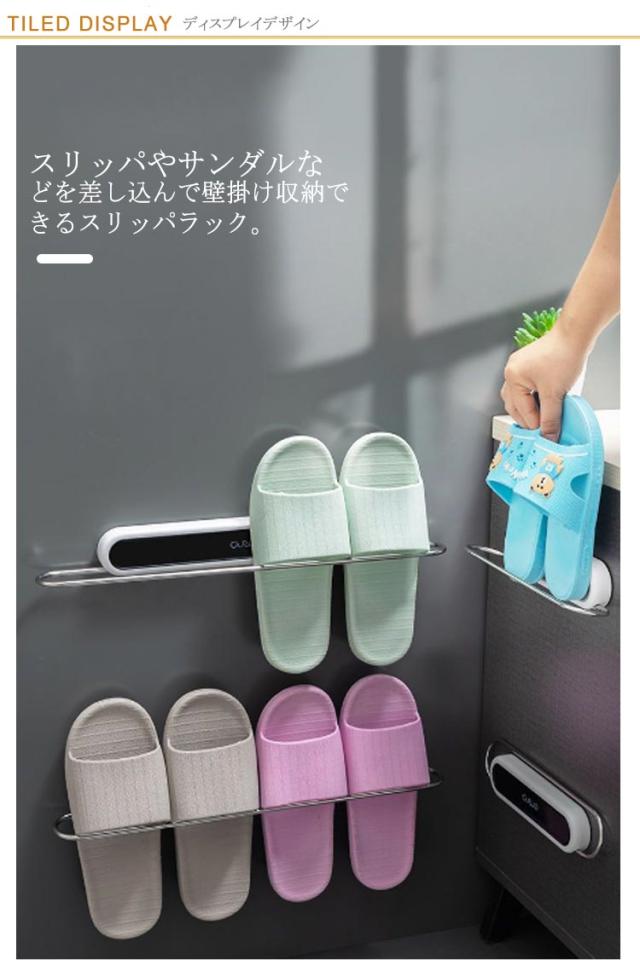 | コンパクトで折り畳み式スリッパラック。 スリッパやサンダルなどを差し込んで壁掛け収納できるスリッパラック。 お部屋の壁や、ドア裏、洗面所の壁、棚やタンスの側面などに貼り付けOK。 デッドスペースになる壁を有効活用して、すっきりスリムに収納できる。 粘着式デザインを採用しております。穴あけ不要で壁面をちゃんと守れます。 | |
