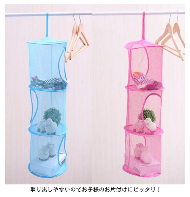 | ネットタイプで中身が見やすい♪吊り下げ収納ネットです。洋服やぬいぐるみなど吊るして収納できる3段/4段ネット。 取り出しやすいのでお子様のお片付けにピッタリ! カラフルカラーでおしゃれに収納◎ ぬいぐるみなどのおもちゃや小物類の整理に。 使わないときはコンパクトに折りたたみ出来て便利ですね。 | |