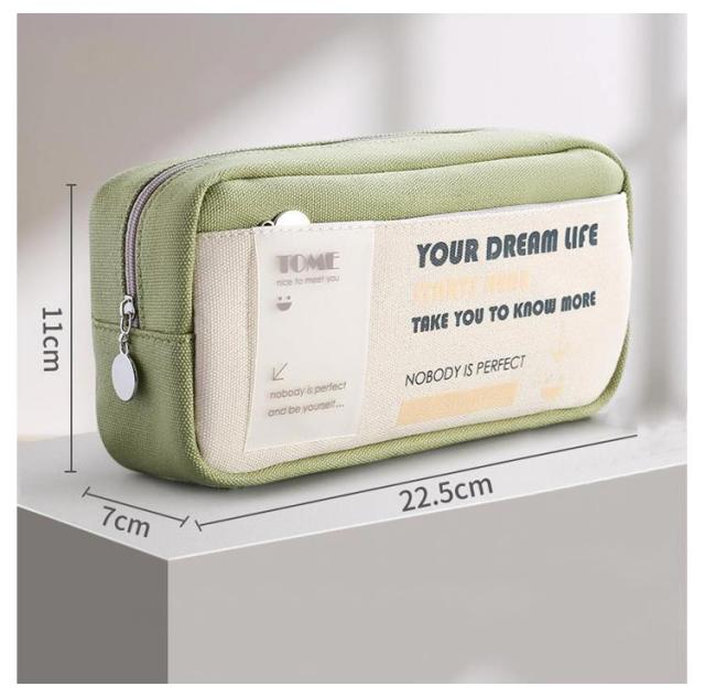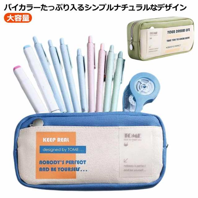 ペンケース 大容量 ブルー グリーン ロゴデザイン ファスナーポケット キャンバスペンケース かわいい 可愛い 高校生女子 高校生 中学生 多機能 自立式 大容量 シンプル 文具 韓国 おしゃれ 可愛い スリムポーチ ギフト 誕生日プレゼント 新学期 入学 進学祝い