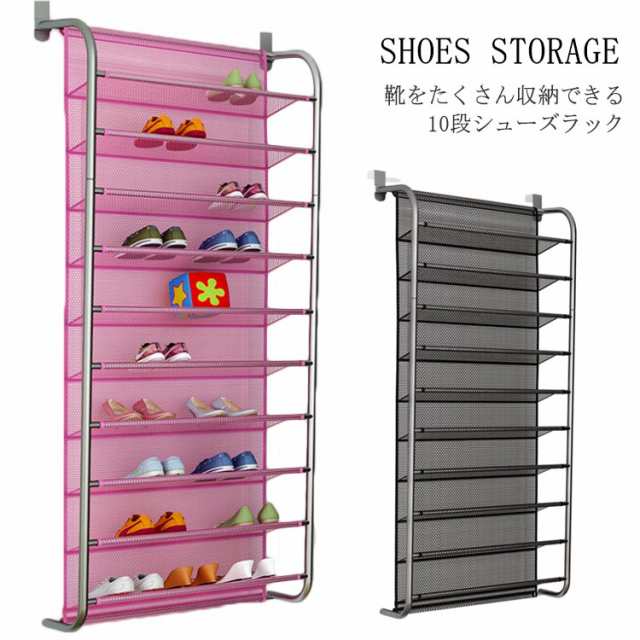 シューズラック 省スペース スリム 大容量 10段 シューズラック 扉裏 引っ掛け 靴 収納 シューズ ラック メッシュ 扉 ドア おしゃれ 下駄箱 シューズボックス 靴箱 省スペース 薄型