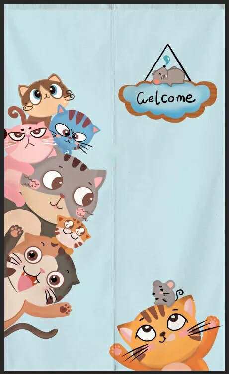 のれん ロング 暖簾 90x150 猫柄 かわいい 間仕切り 洋風 猫雑貨