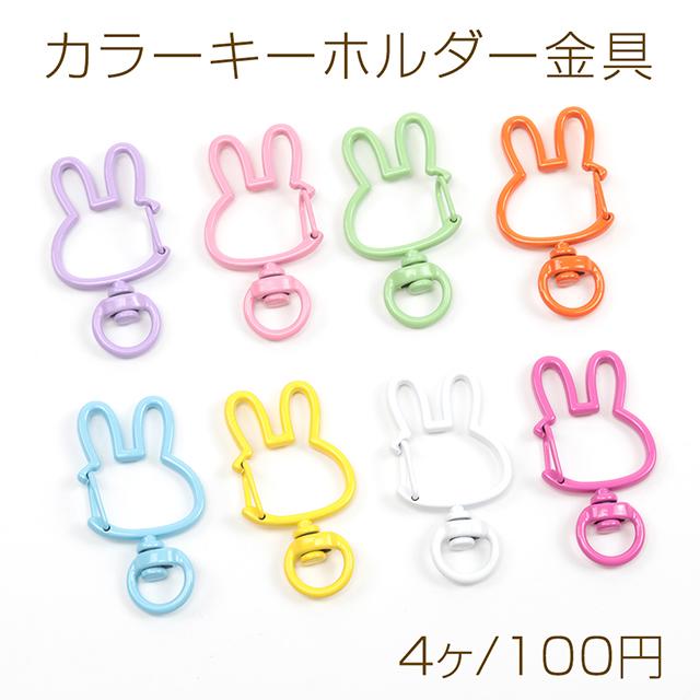 カラーキーホルダー金具 兔型 推し色キーホルダー 留め具 カラーナスカン カラーカラビナ 回転カン 約22×42mm(4ヶ)