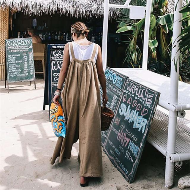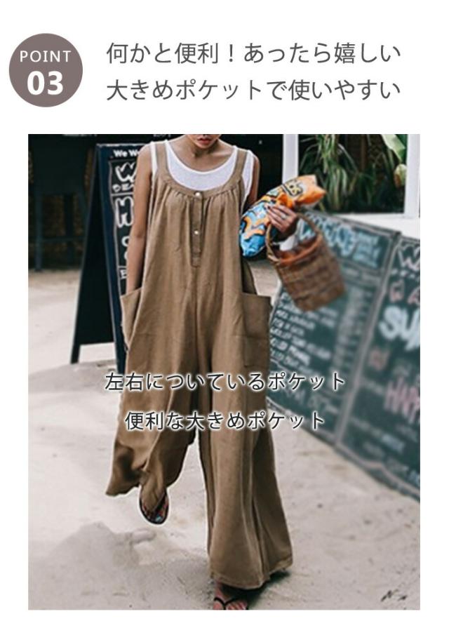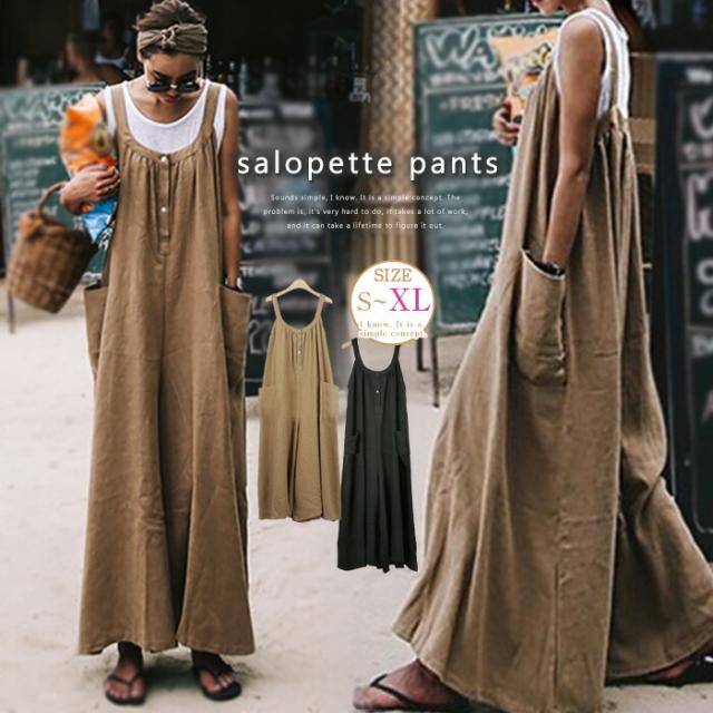 サロペット レディース きれいめ オールインワン リネン 綿 綿麻 春 夏 ゆったり サロペ オーバーオール つなぎ ワイドパンツノースリーブ ポケット付き デイリー デート 旅行 美脚パンツ