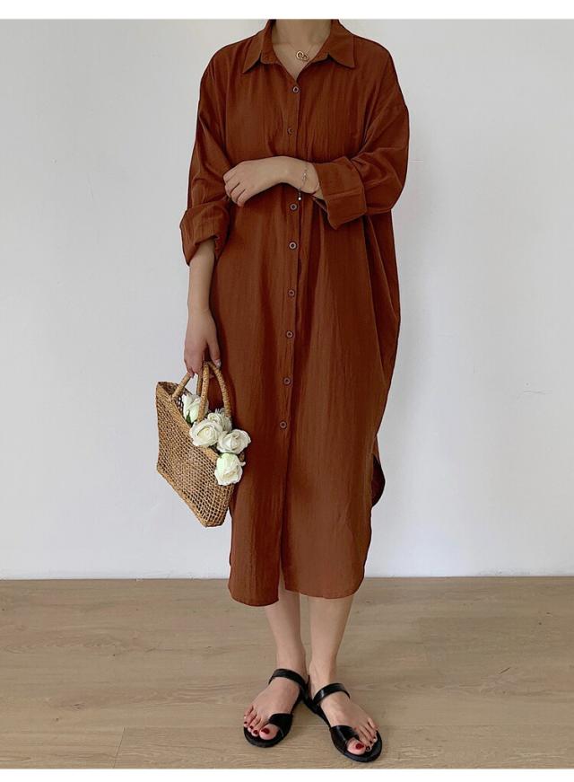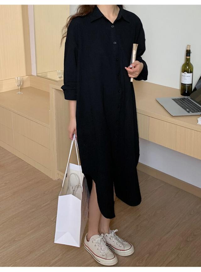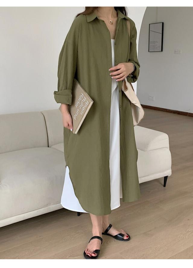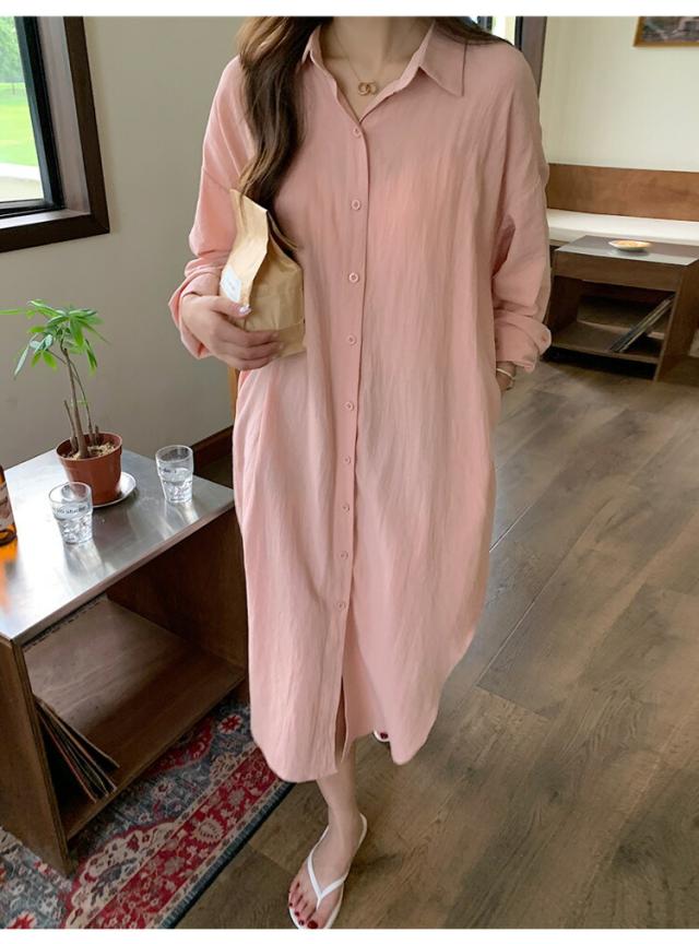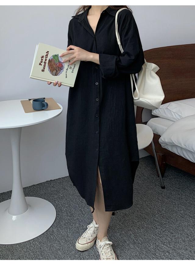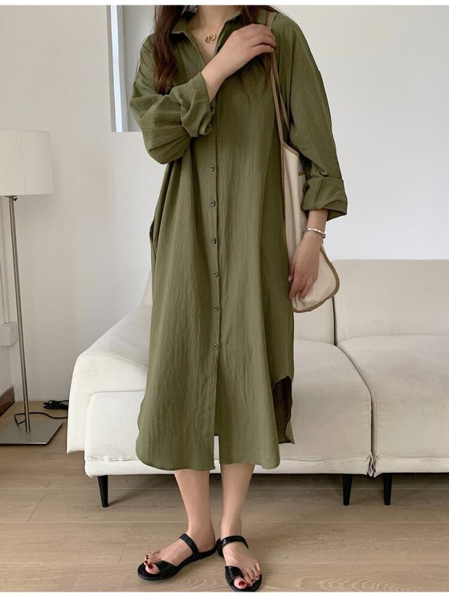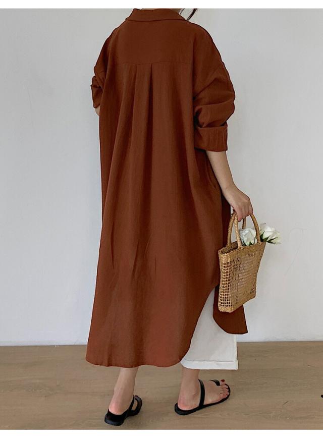 シャツワンピース ワンピース 前開き レディース ロングワンピース ロング丈 マキシ丈 綿麻 ドロップショルダー ゆったり 体型カバー 春秋 夏 羽織り きれいめ 着心地おしゃれ 通勤 長袖ワンピース