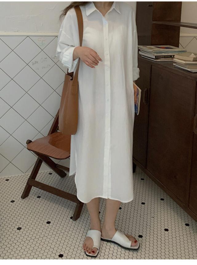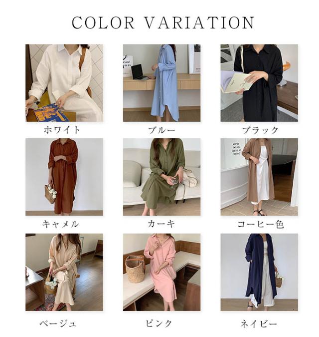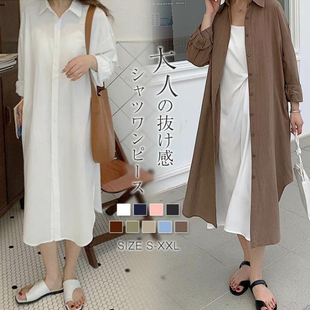 シャツワンピース ワンピース 前開き ホワイト ブルー ブラック キャメル カーキ コーヒー色 ベージュ ピンク ネイビー S M L XL 2XL