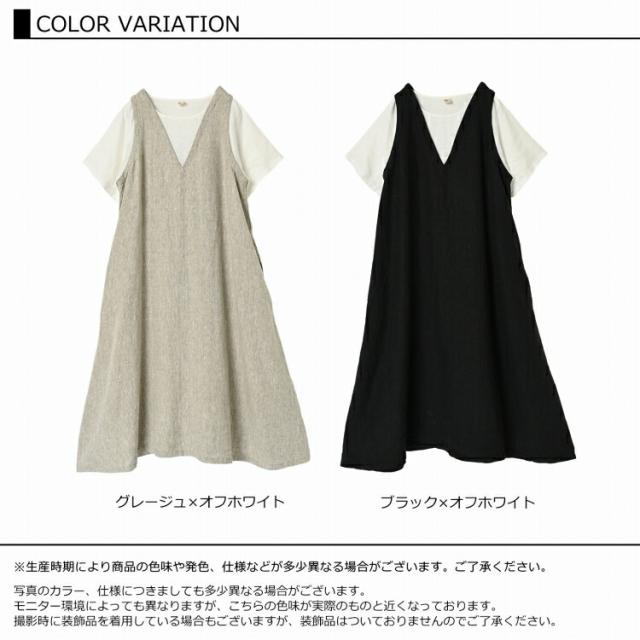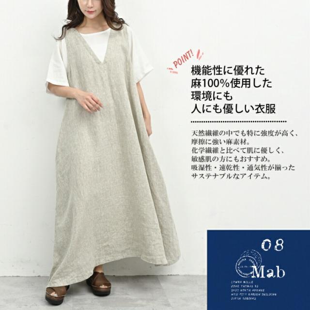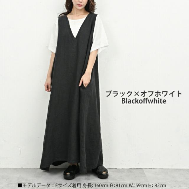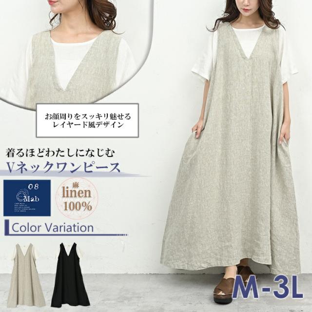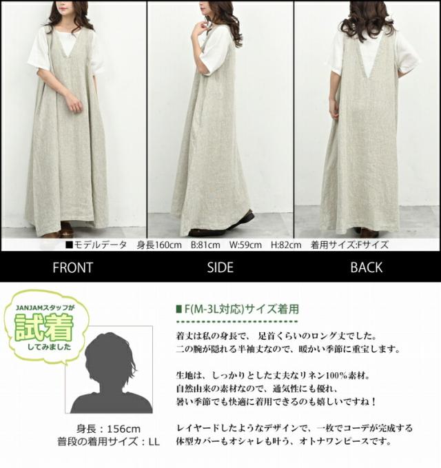【送料無料】大きいサイズ レディース 重ね着風ワンピース 半袖 ロング丈 ジャンスカ風 08mab linen100 F(M/L/LL/3L対応) ゆったりサイズ ぽっちゃり女子 プラスサイズ