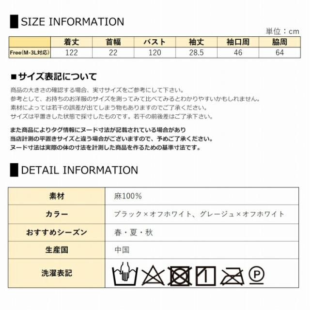 F【M-3L対応】:着丈122 首幅22 バスト120 袖丈28.5 袖口周46 脇周64