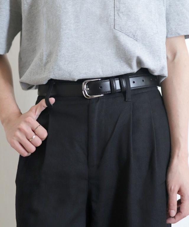 しっかり厚みのあるカウレザーを使用し、スタイリッシュなシルバーバックルを合わせたおしゃれなデザインベルト。