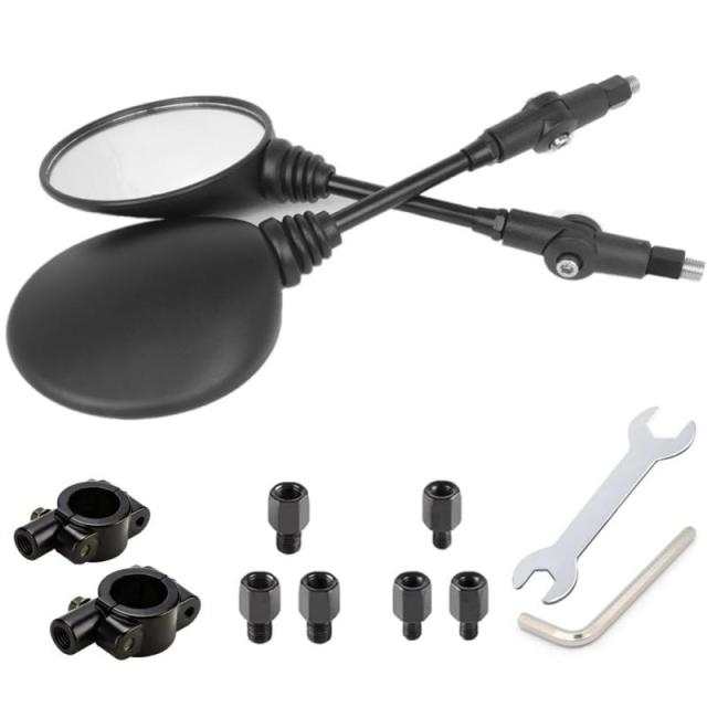 ELIFEPARTS バイク ミラー 汎用 オフロード 可倒式 ミラー 左右2本セット 10mm/8mm 正ネジ取付け 丸形