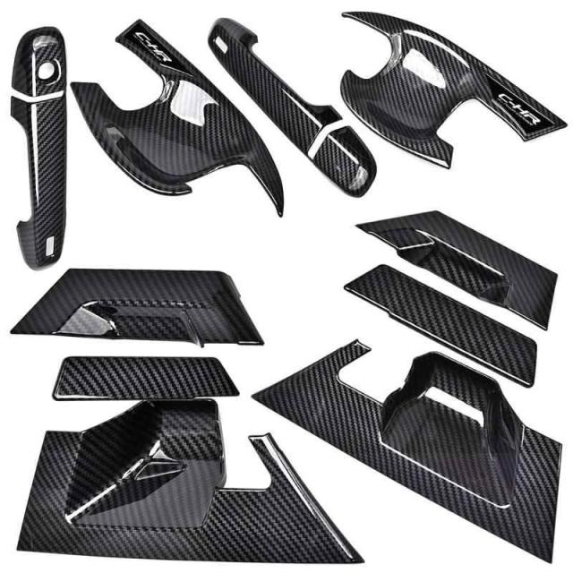 Kayafarトヨタ C-HR 専用 外装 パーツ ドアハンドルカバー メッキ ガーニッシュ ドレスアップパーツ 専用設計 TOYOTA chr CHR 全グレード対応 (カーボン調)