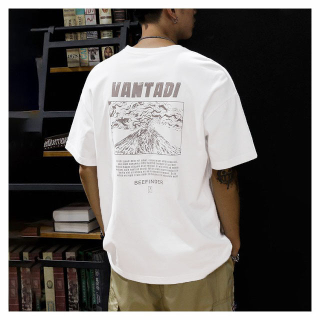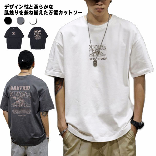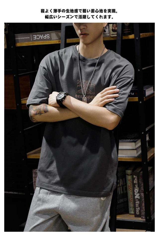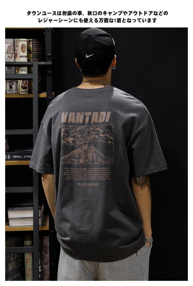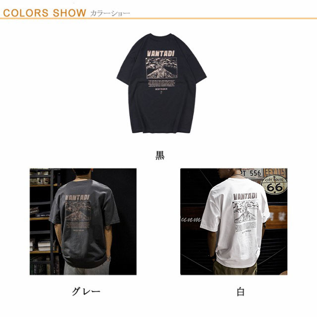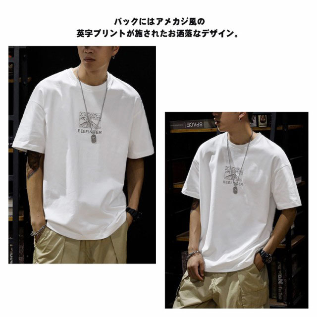 【送料無料】tシャツ カットソー メンズ 半袖 丸首 バックプリント アメカジ 古着風 レトロ トップス アメリカン ストリート カジュアル 大人 オーバーサイズ 大きいサイズ グレー 白 黒 ブラック かっこいい