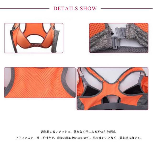 | ぴったりフィットし、ホールド力抜群の前開きファスナースポーツブラ。 前ファスナーデザイン、汗をかいても脱ぎ着楽々。 二層構造で運動中に気になるバストの揺れを防ぎます。 ノンワイヤーなのに、フィット感よく、ストレスフリー。 通気性の良いメッシュ、蒸れなく汗による不快さを軽減。 上下ファスナーガード付きで、直接お肌に触れないから、肌を痛むことなく、着心地抜群です。 余分のお肉をしっかりキャッチする脇高&背中のデザイン、すっきりしたシルエットを演出し、後ろ姿もキレイです。 | |