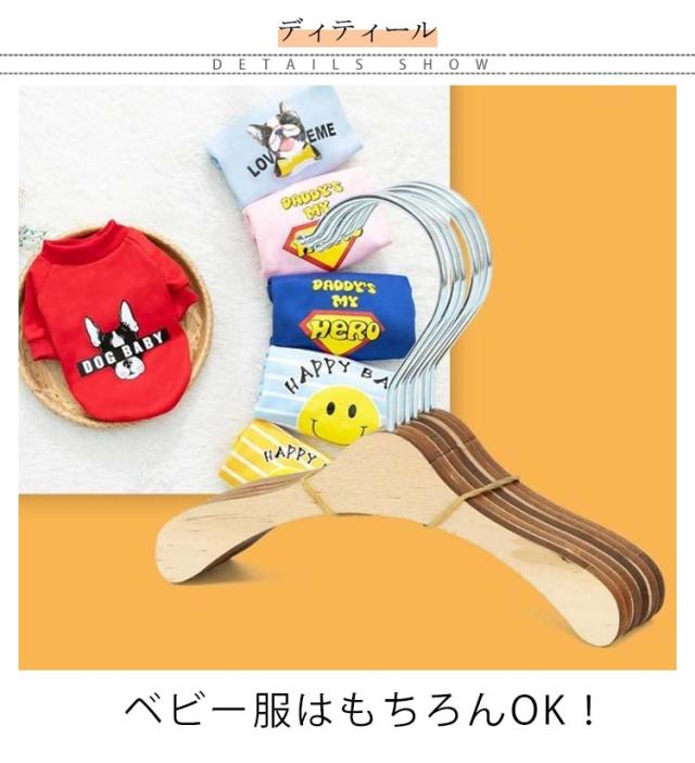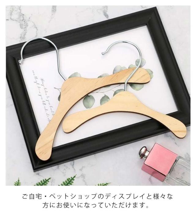 | 木製のペット用ハンガー10本セットです。 ベビー服はもちろんOK! 木製のペット用ハンガーは、丈夫で使いやすいので長い期間大切にお使いになっていただけます。 ご自宅・ペットショップのディスプレイと様々な方にお使いになっていただけます。 | |