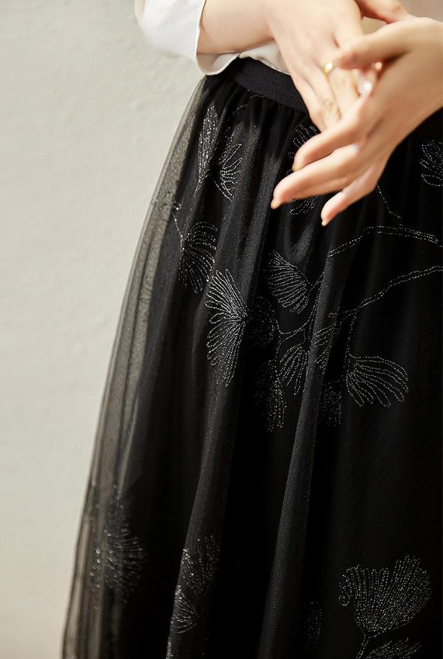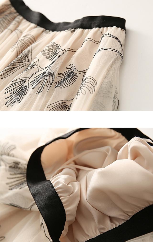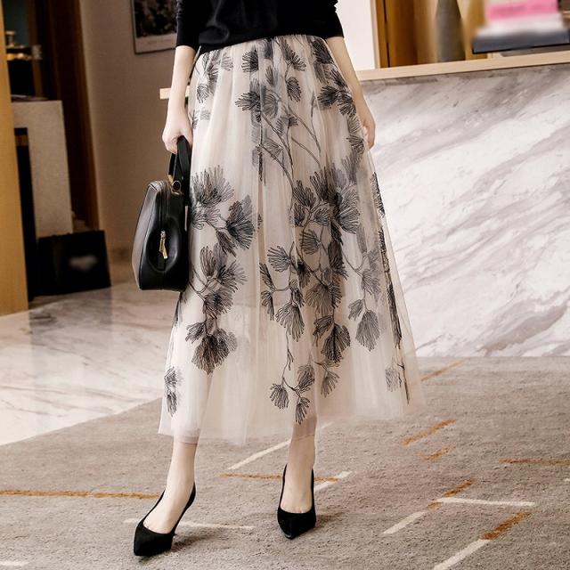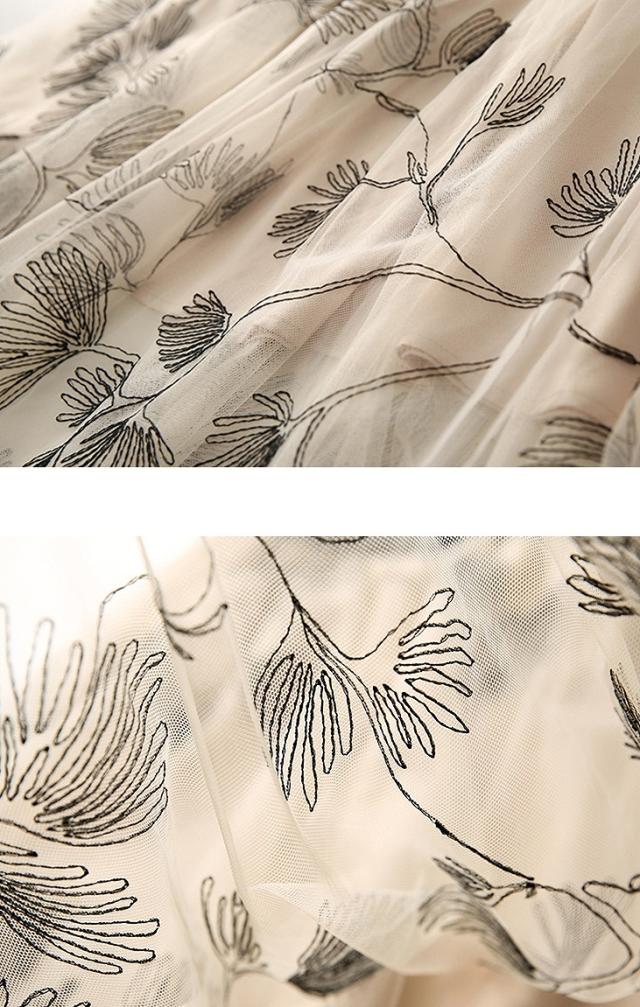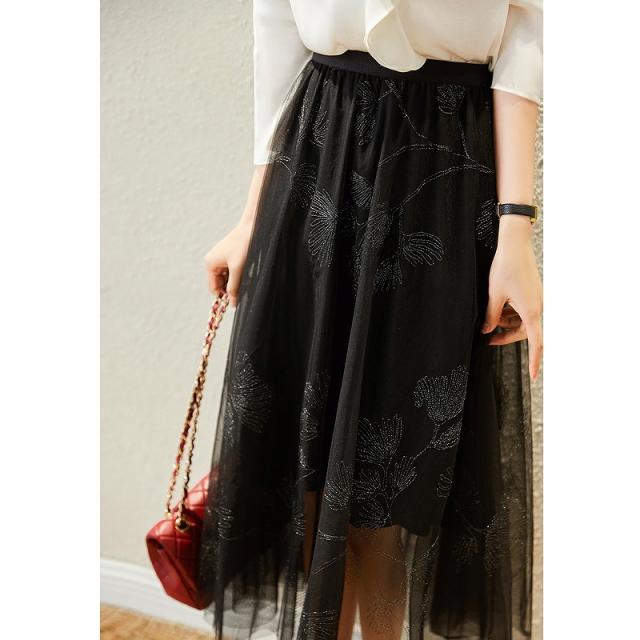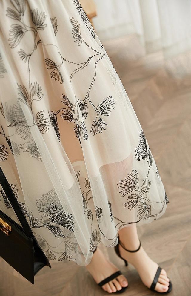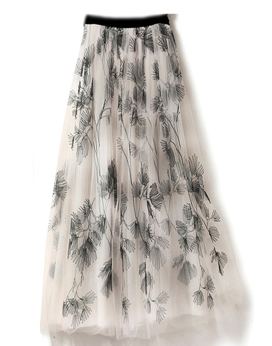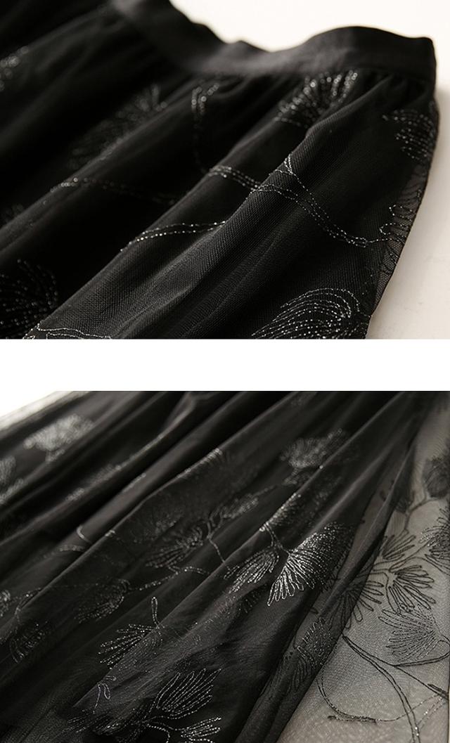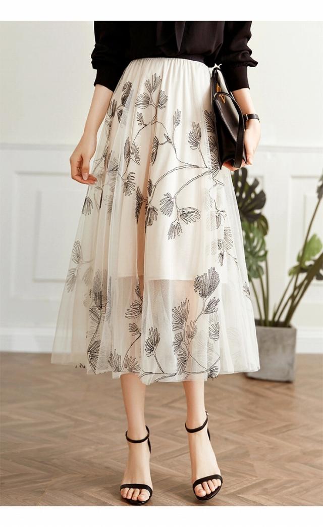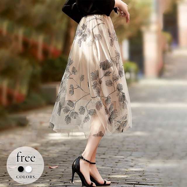スカート レディース 総レース 刺繍 お花 ミモレ丈 ロング丈 ボタニカル 植物 フレア チュール ホワイト ブラック 美人 女子会 イベント清楚 シンプル/
