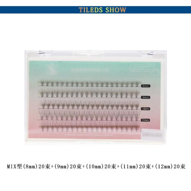 | サイズについての説明 | 【長さ】MIX型(8mm)20束+(9mm)20束+(10mm)20束+(11mm)20束+(12mm)20束 【カール】C 【太さ】 0.07 【内容量】総計100束入り |