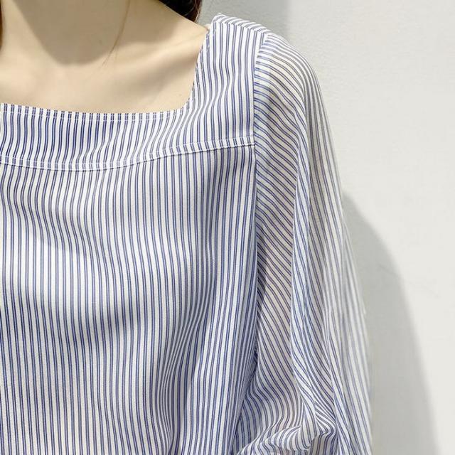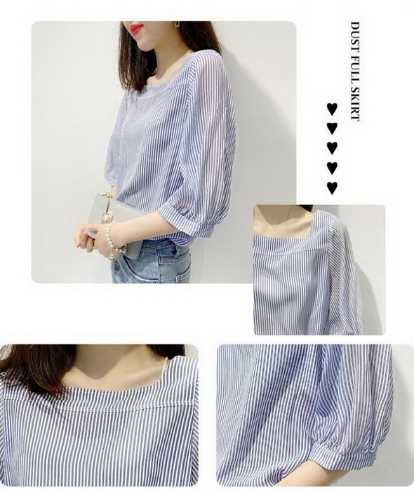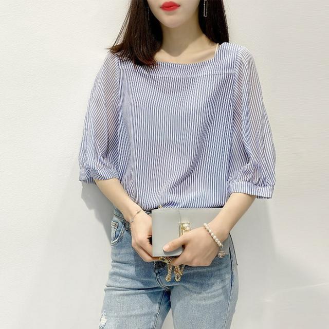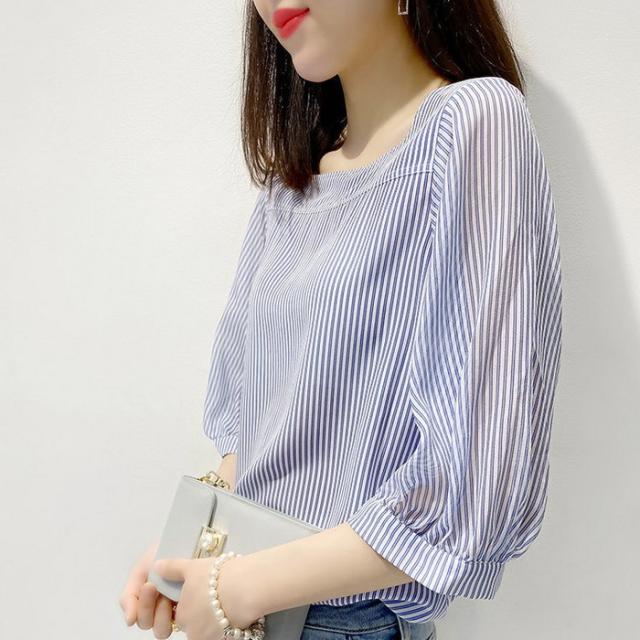 ブラウス レディース 40代 春夏新作 オシャレブラウス シフォンブラウス 通勤 パフスリーブブラウスス ゆったりシャツ 五分袖トップス トライプ柄 韓国風 上品