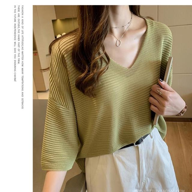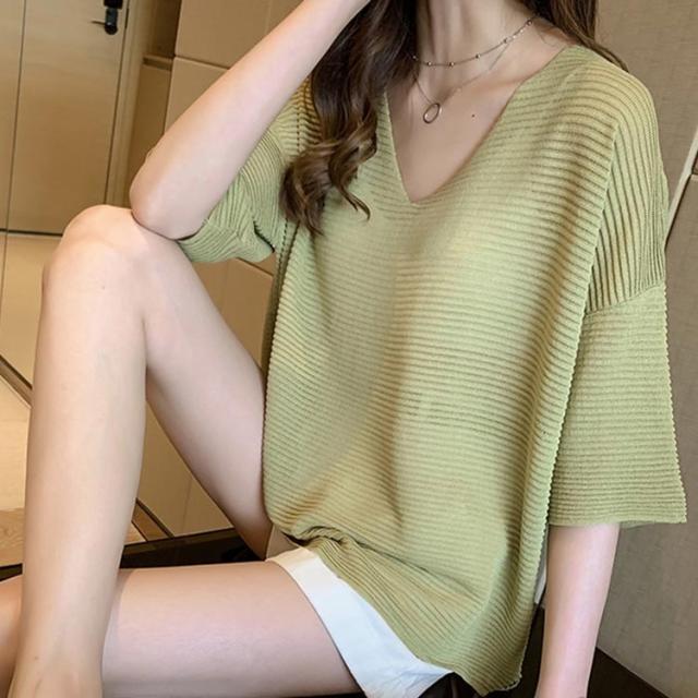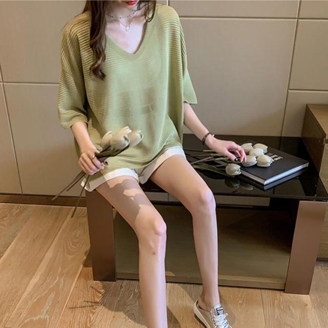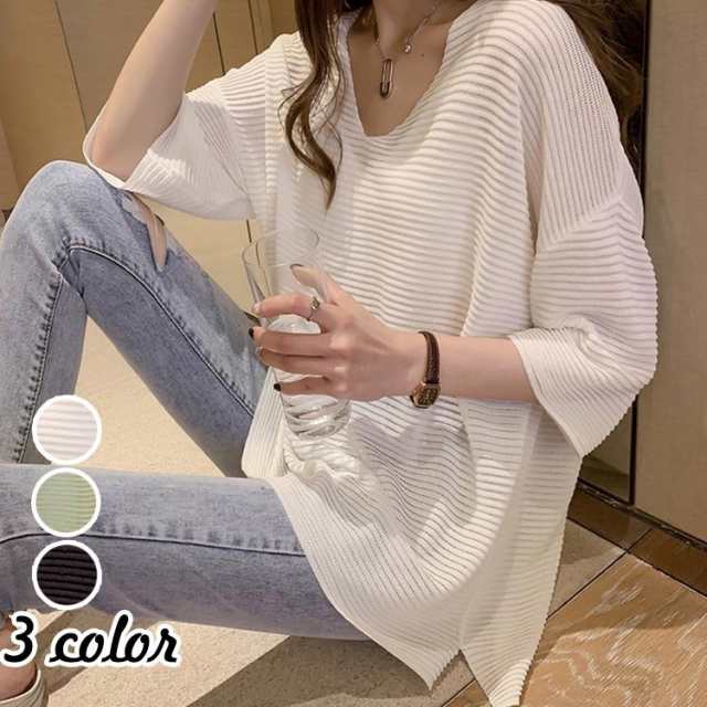 ニットTシャツ トップス レディース きれいめ 40代 春夏 Tシャツ 白インナー 韓国風 半袖トップス 大きいサイズ オシャレ ブラウス Vネック