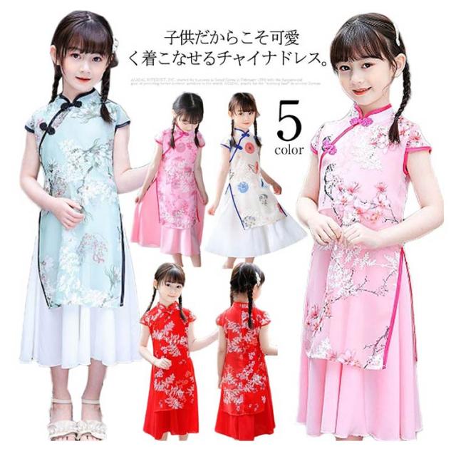 チャイナドレス 子供 キッズ チャイナドレス ロング チャイナ服 ワンピース 子供ドレス 女の子 花柄 子供服 パーティードレス 半袖 夏 漢服 中華風 春秋 キッズドレス ハロウィン 卒業式 発表会 結婚式 可愛い 110 120 130 140 150 160 送料無料