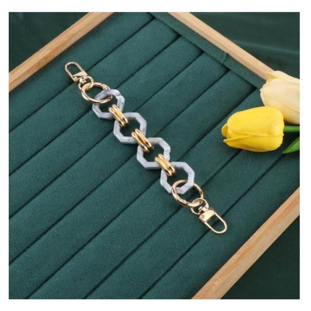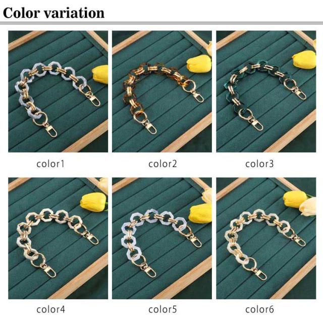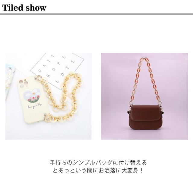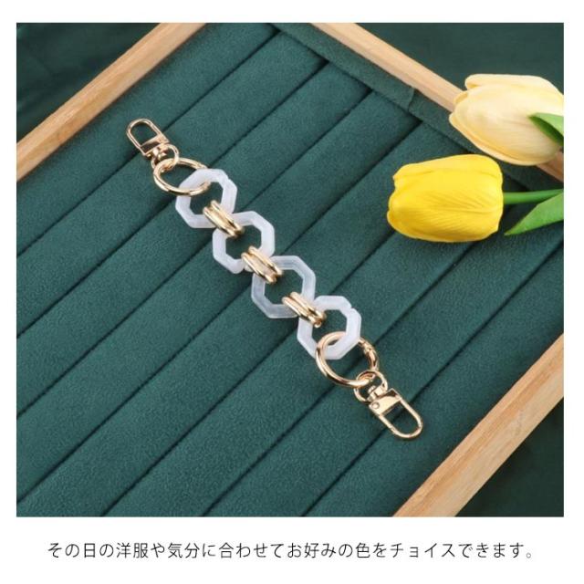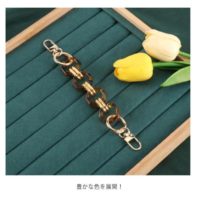 | 鼈甲アクリルチェーンバッグストラップ! 豊かな色を展開! 手持ちのシンプルバッグに付け替えるとあっという間にお洒落に大変身! ハンドバッグや斜め掛けバッグ、肩掛けバッグなどにお使いいただけます。 その日の洋服や気分に合わせてお好みの色をチョイスできます。 | |
