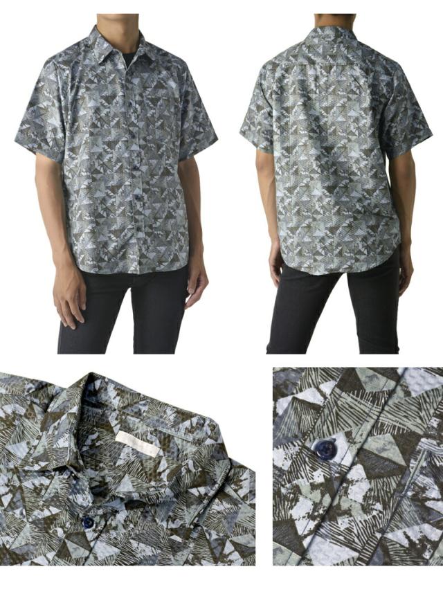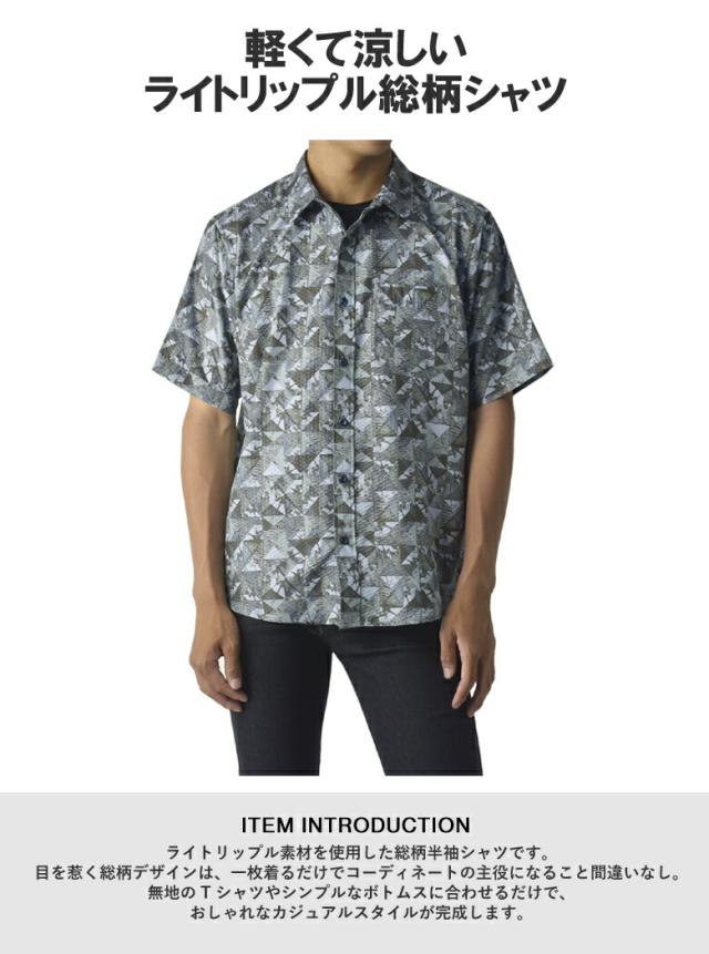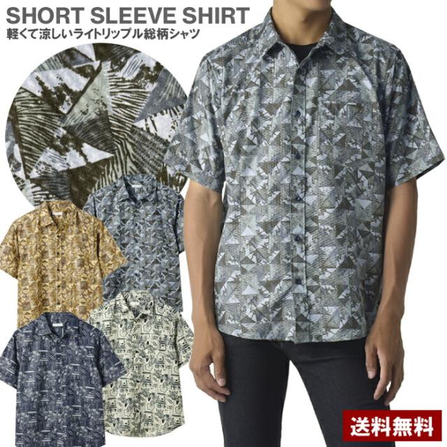 半袖シャツ メンズ 総柄 ライトリップル レギュラーカラー 胸ポケット おしゃれ カジュアル デザインシャツ 男性 紳士【B6L】【パケ1】