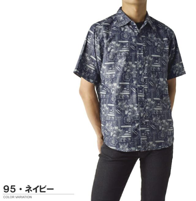 送料無料☆軽くて涼しいライトリップル総柄シャツ。