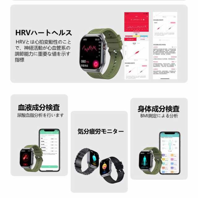 【800オフクーポン配布中】スマートウォッチ 血圧測定 血糖値 ECG心電図 尿酸 血中酸素 心拍数 睡眠管理 日本製 センサー 体温 通話機能 体温監視 24時間健康管理 心拍数 着信通知 運動モード 医療レベル 女性生理 父の日 敬老の日 ギフト 3年保証