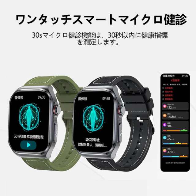 ECG心電図、血糖測定、血液成分、体組成分析、通話機能、心電図機能、血中脂質・尿酸測定 心拍数、血圧、血中酸素、体温および他の健康、遠距離でも家族や友人のための機能のリモートケア機能。