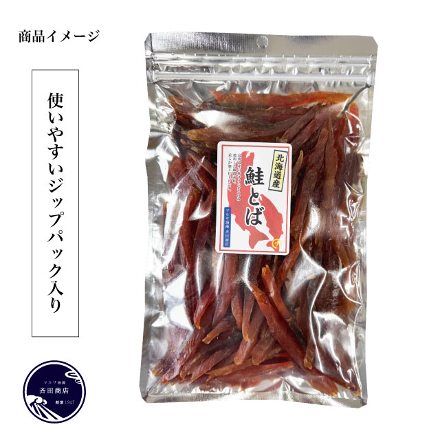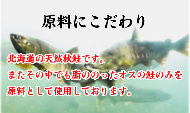 北海道の天然秋鮭使用、その中でも脂の乗ったオス鮭のみ使用したこだわりの鮭とば。
