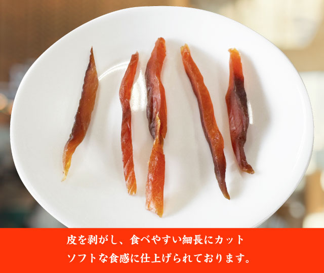 食べやすいよう、皮を剥ぎ細切り仕様。