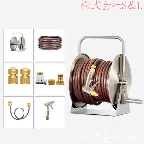 ホースリールHoseReels10m15m20m30m40m50mステンレス鋼ホースリールオーガナイザー高圧散水ホースウォーターガンセットS&L収納便利水道ホースジョイ