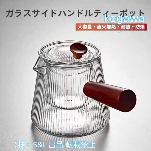 ティーポット耐熱ガラス茶こし付き手作りガラス製ポット木製持ち手紅茶フルーツティーリーフティー花茶S&L工芸茶ハーフティー大容量直火可業務用飲