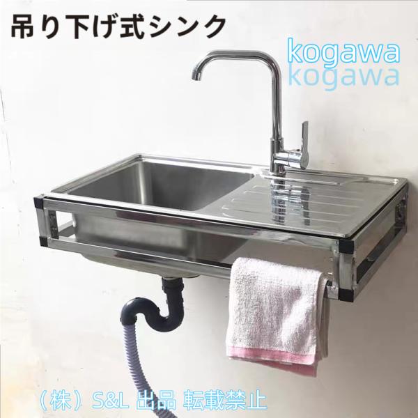 壁掛け式キッチン流し台 キッチンシンク 簡易省スペースガーデンシンク 株式会社S&L大容量ステンレス製流し台 補強ブラケット付き キッチン/屋外/庭先使用 B