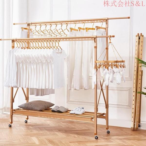 おしゃれ 物干し台 屋外 風に強い 物干しラック アルミ 洗濯物干し ベランダ 室内物干し 物干し キャスター付き株式会社S&L倒れない 錆びない コンパクト収納